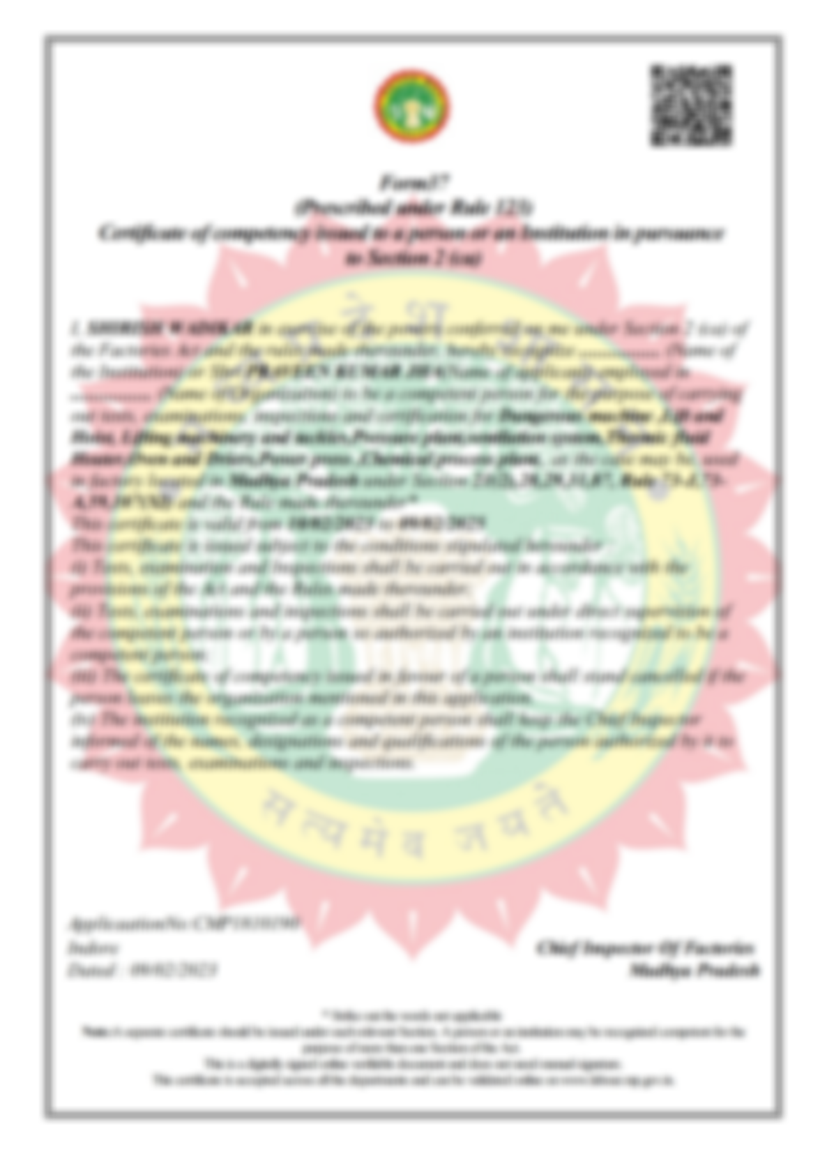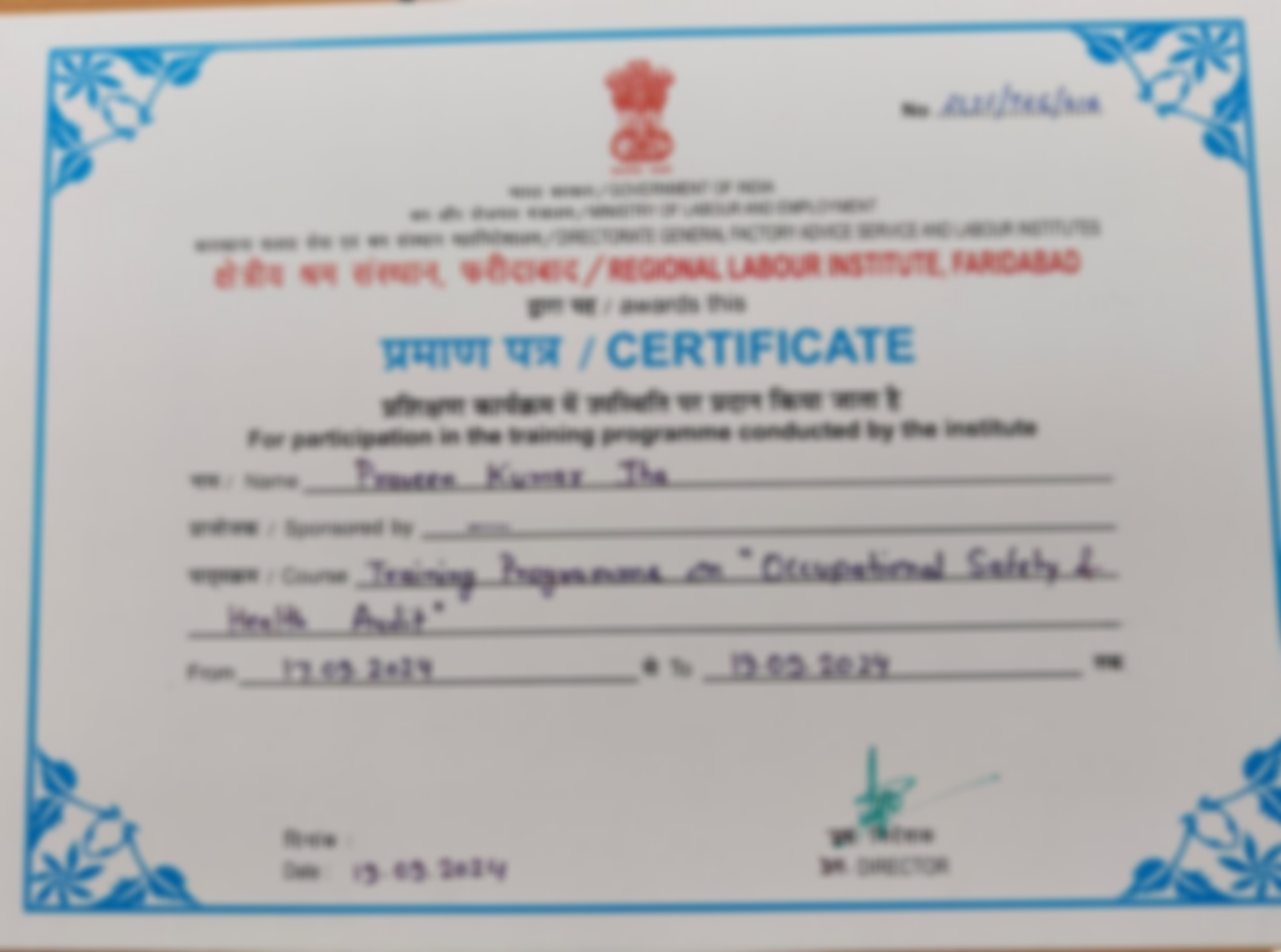 REGIONAL LABOUR INSTITUTE,FARIDABARD CERTIFICATE